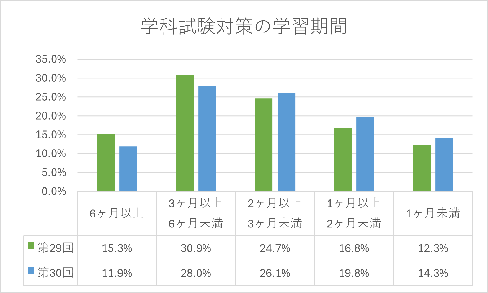 | 学習期間 | 合格率 |