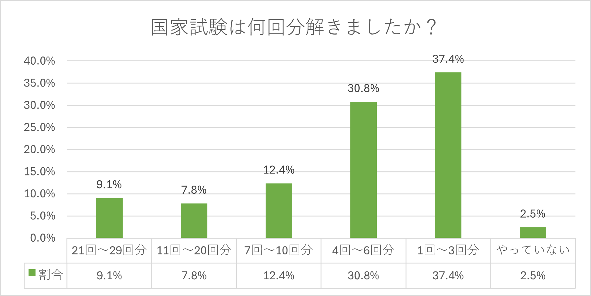 国家試験の過去問の実施回の数の割合は次のような結果となりました。