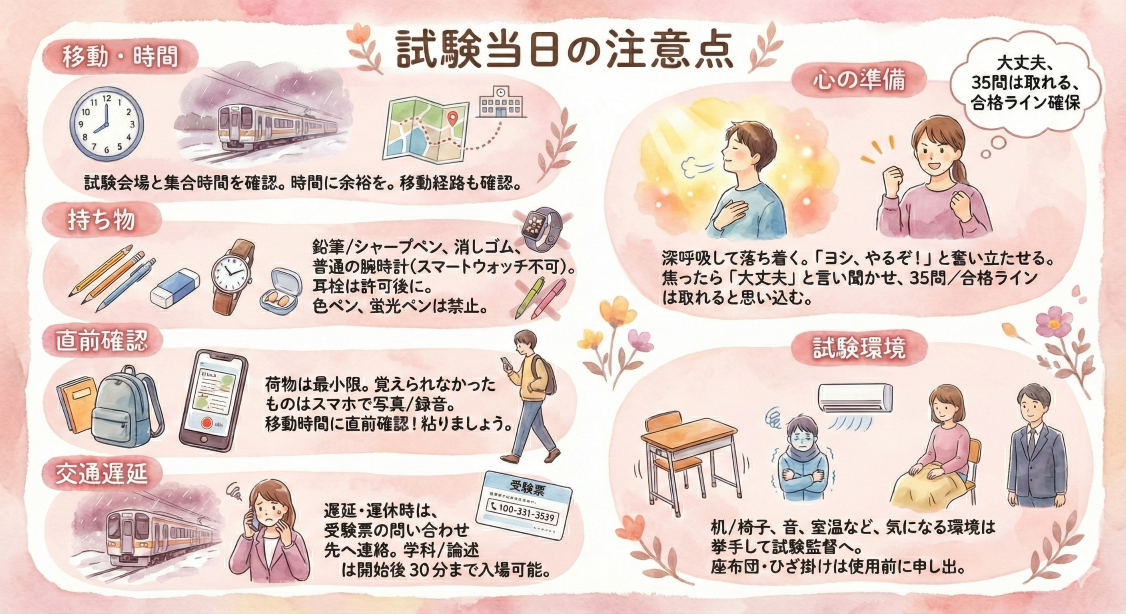 試験当日の注意点
