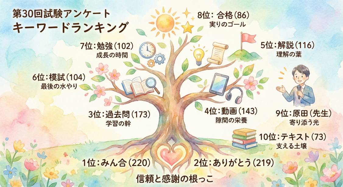 第30回試験を受験したみなさんからのアンケート結果「学習法やご感想」を公開しました。第30回関連では最後のアンケ-ト結果の公表です。