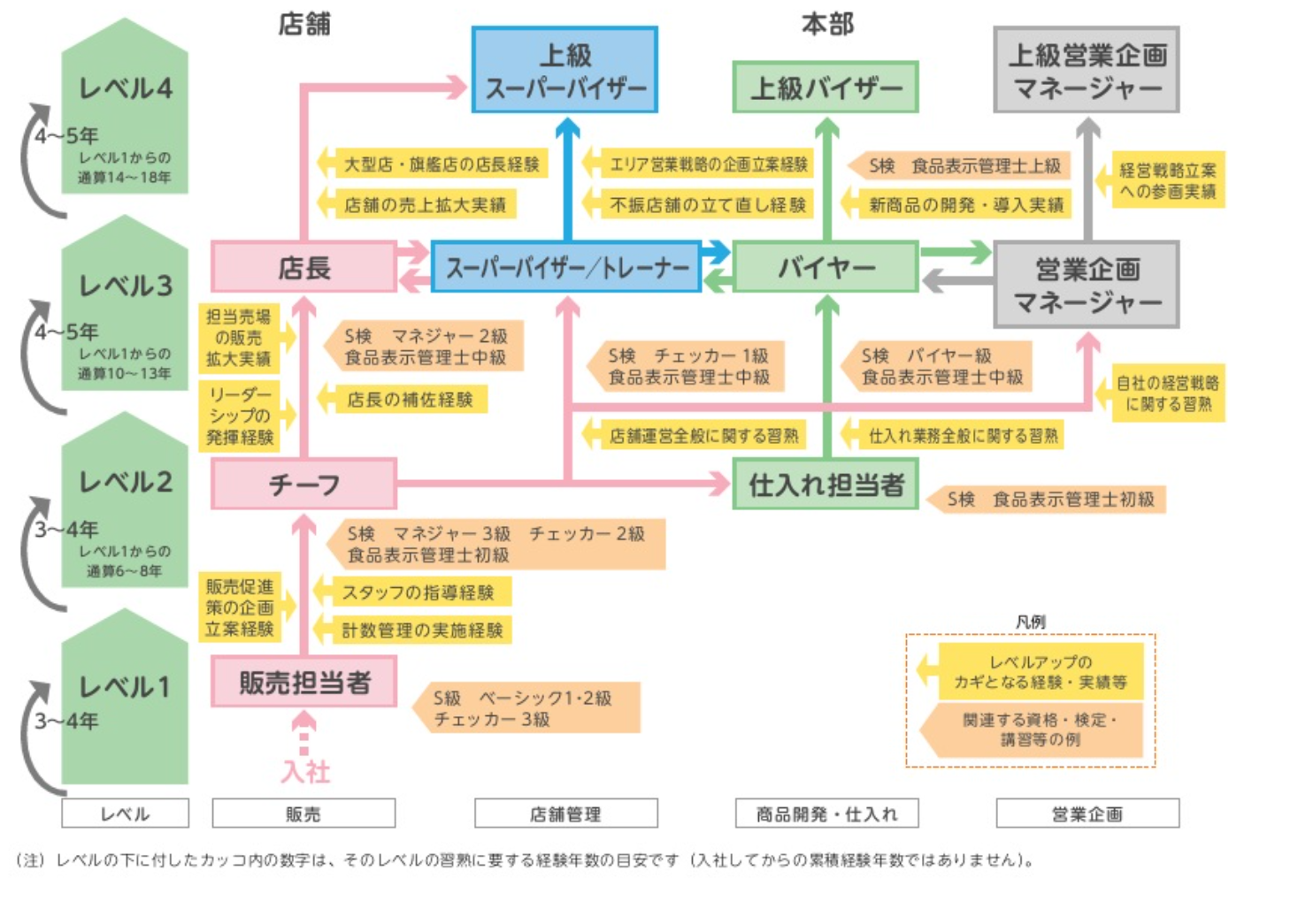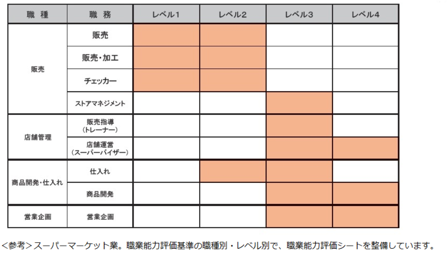一方、キャリアマップは、職業能力評価基準で設定されているレベル1~4をもとに、能力開発の標準的な道筋を示したものである。