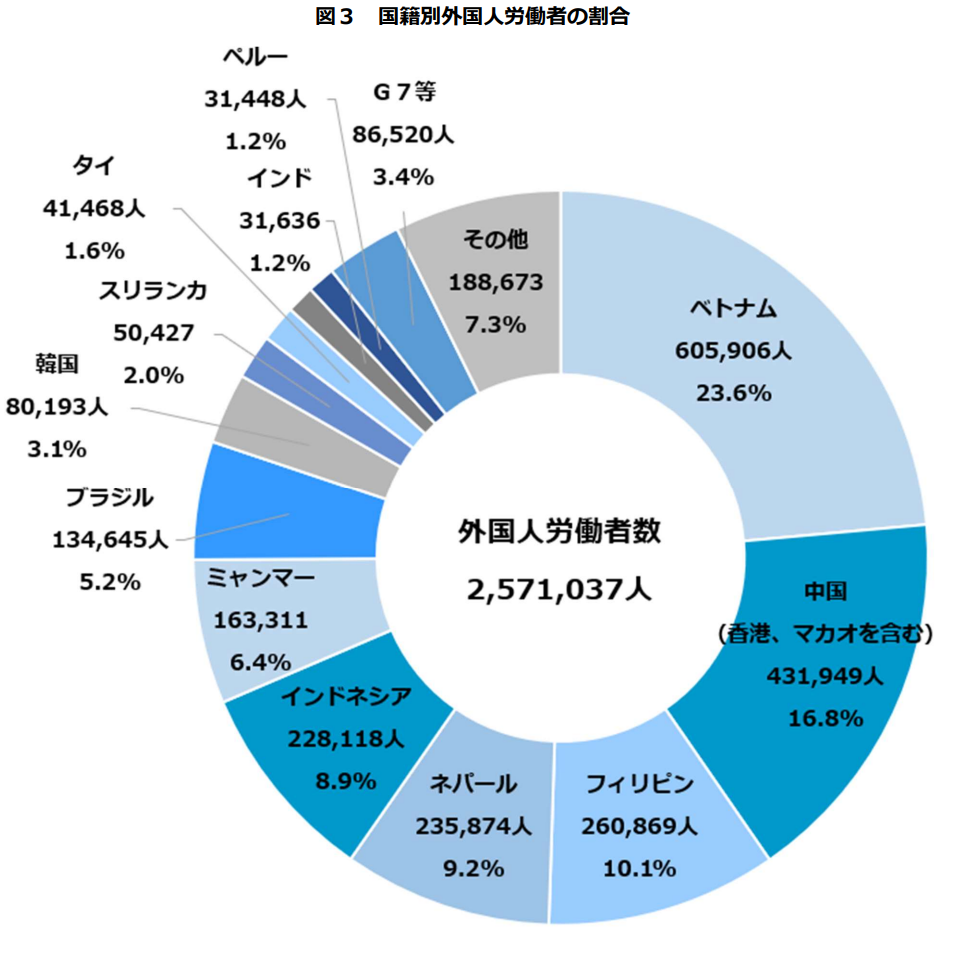 外国人労働者の国籍で最も多いのは?