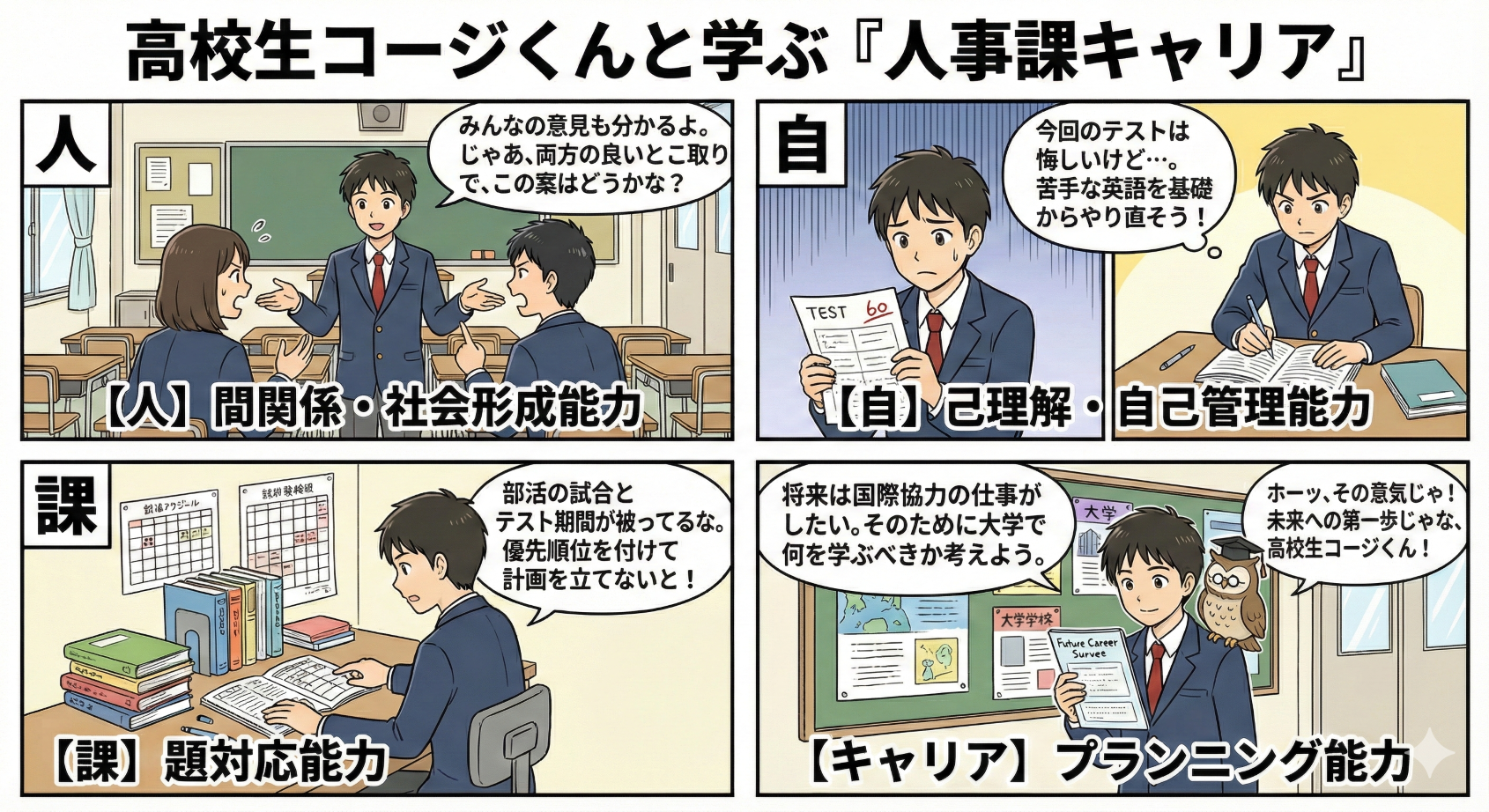 3.○:キャリアプランニング能力:多様な生き方に関する様々な情報を適切に 取捨選択・活用しながら、自ら主体的に判断してキャリアを形成していく力である。【P4】