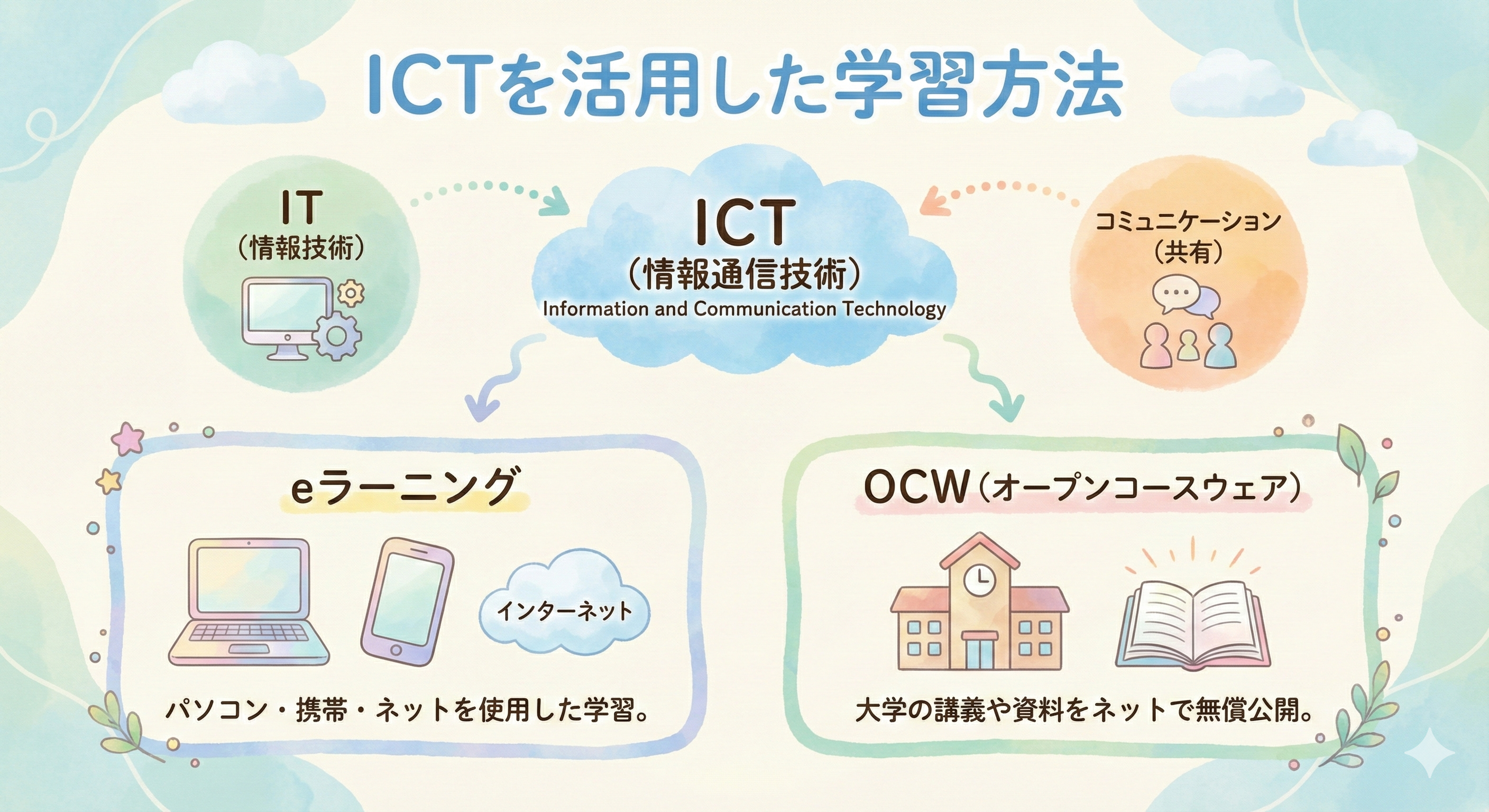 パソコン・スマートフォン・インターネットを積極的に使用した学習形態のことである。
