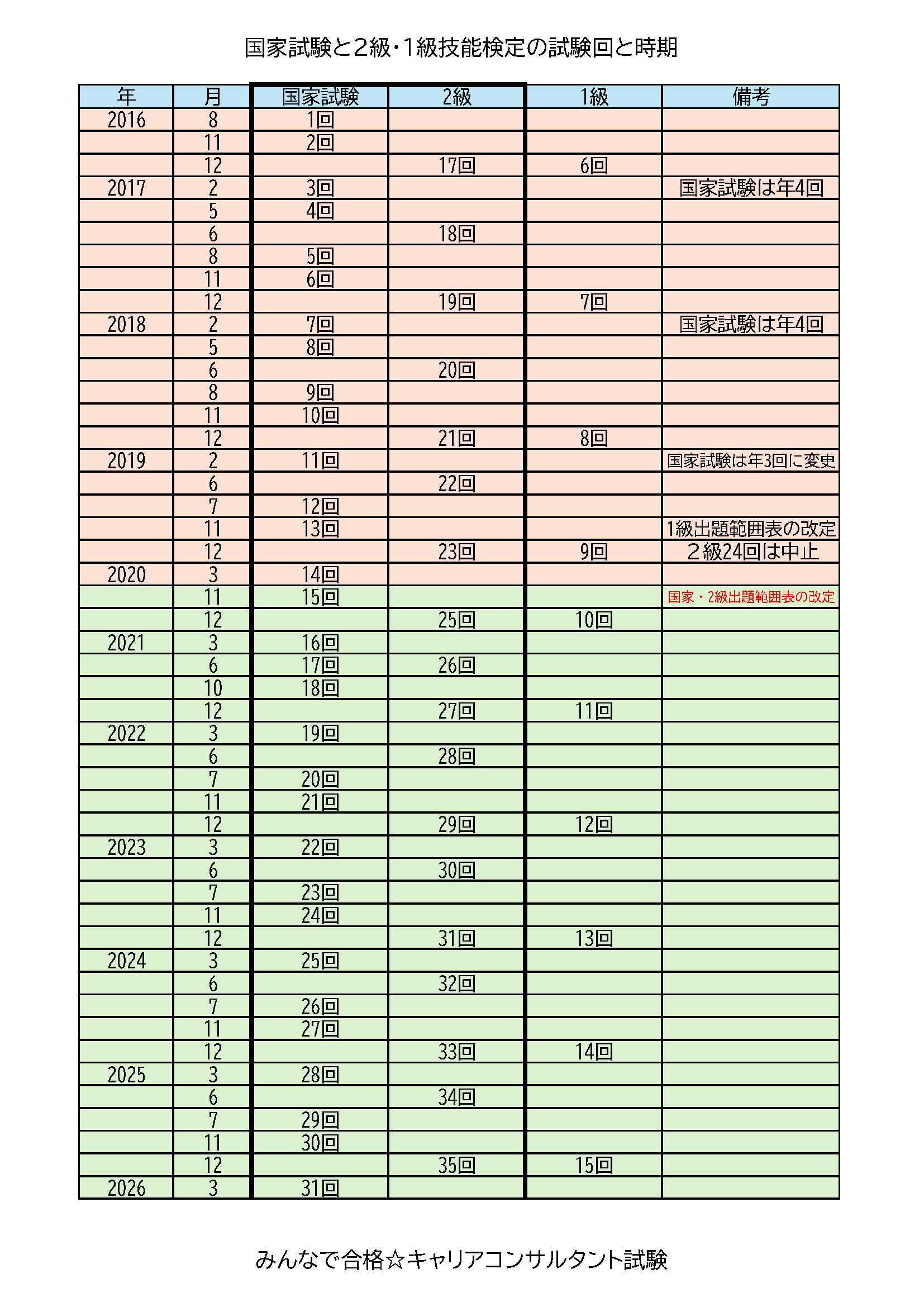 国家試験と2級・1級の試験実施回と時期(PDF)